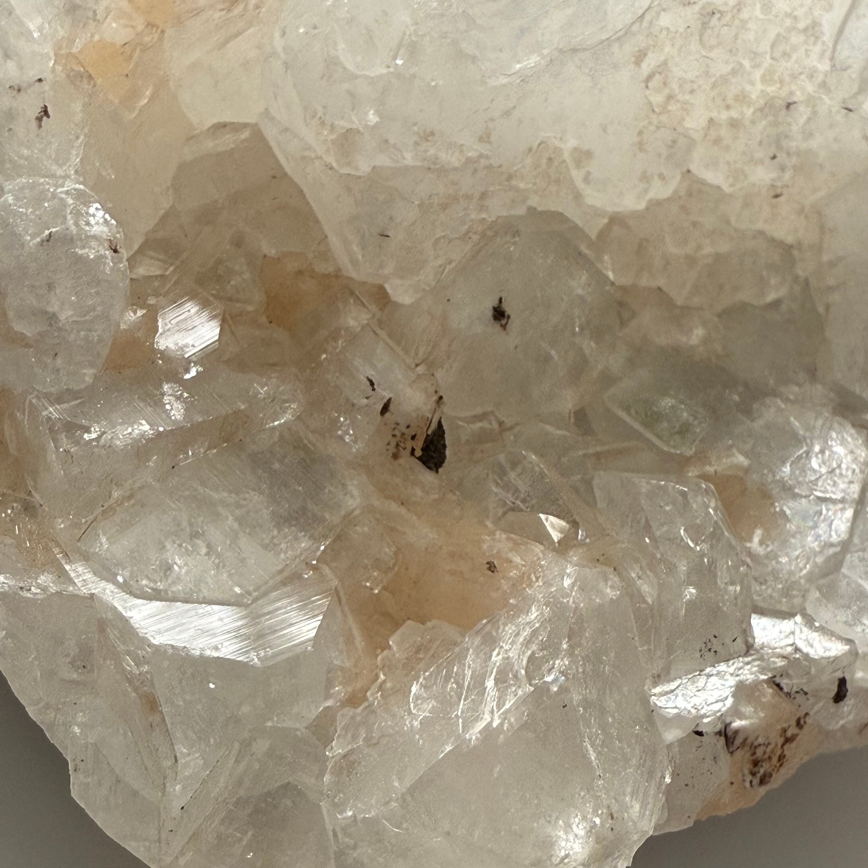 メインのホワイトカラーの中にコーラル?サーモン?な色合いの結晶が点在して