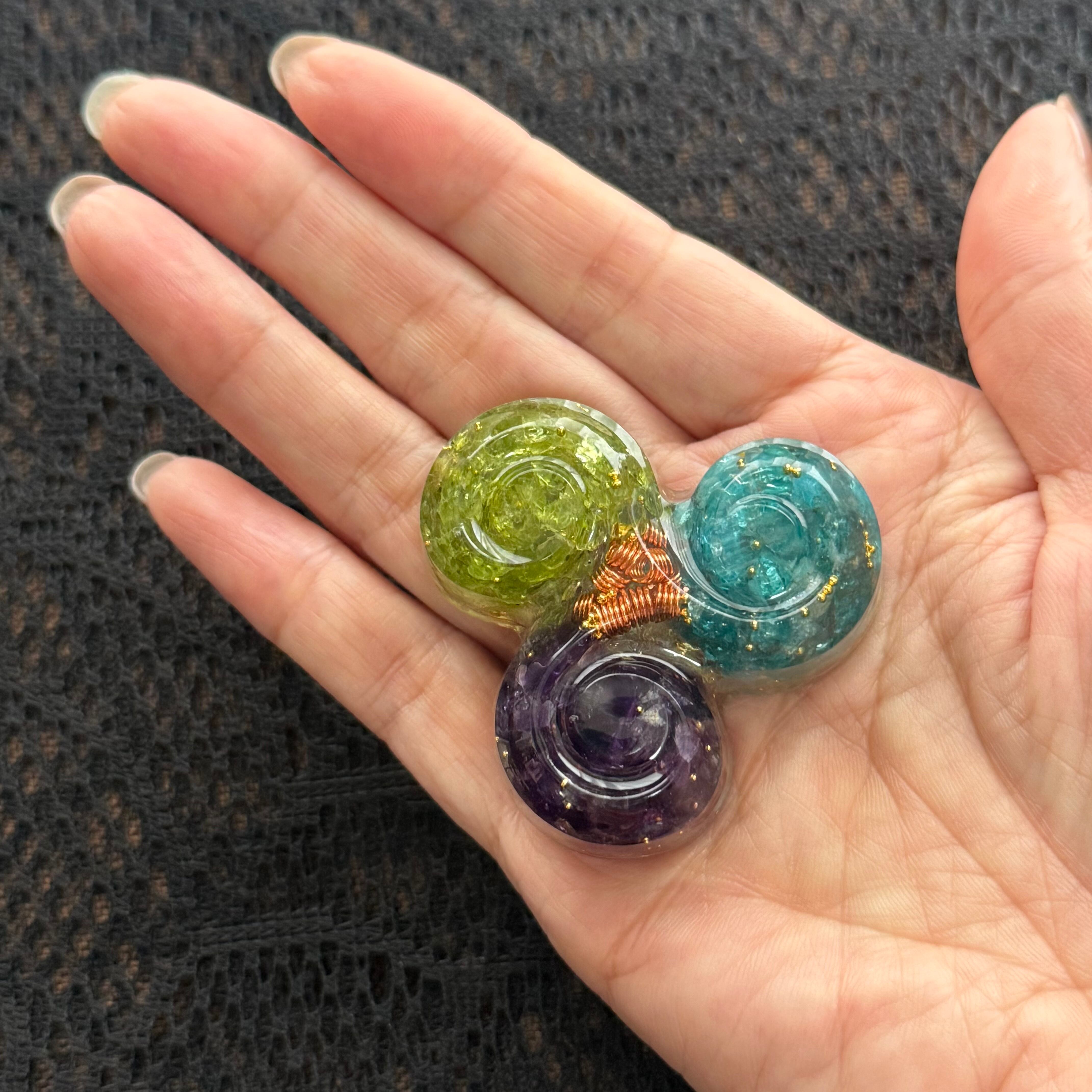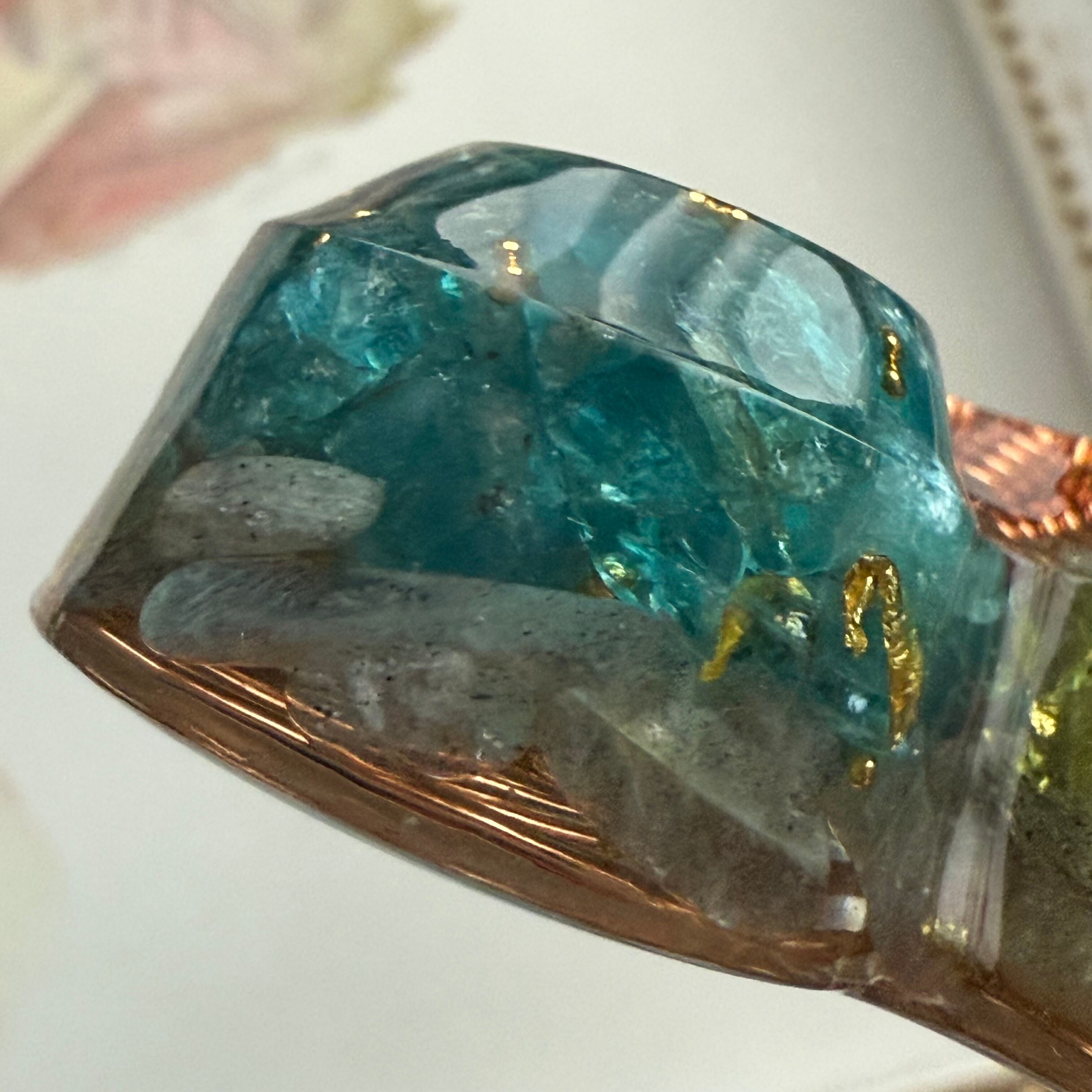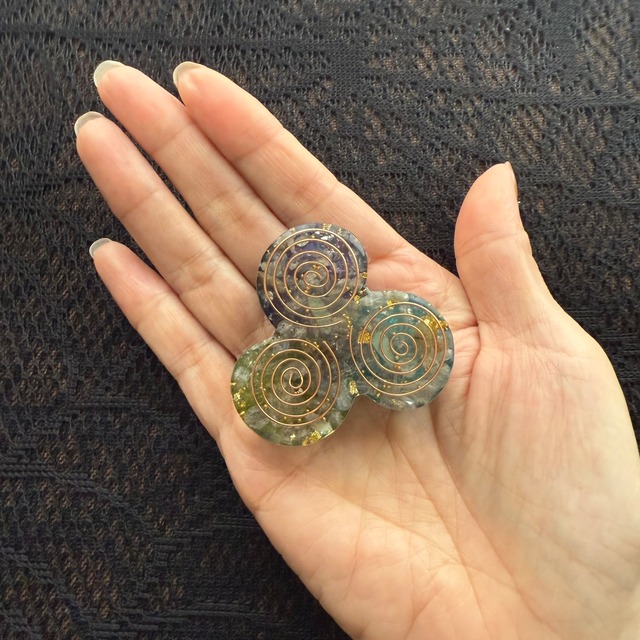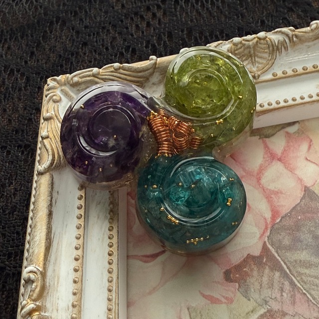 ハイクオリティなアクア・パープル・グリーンの3色に底面にはラブラドライトを敷き詰めました。