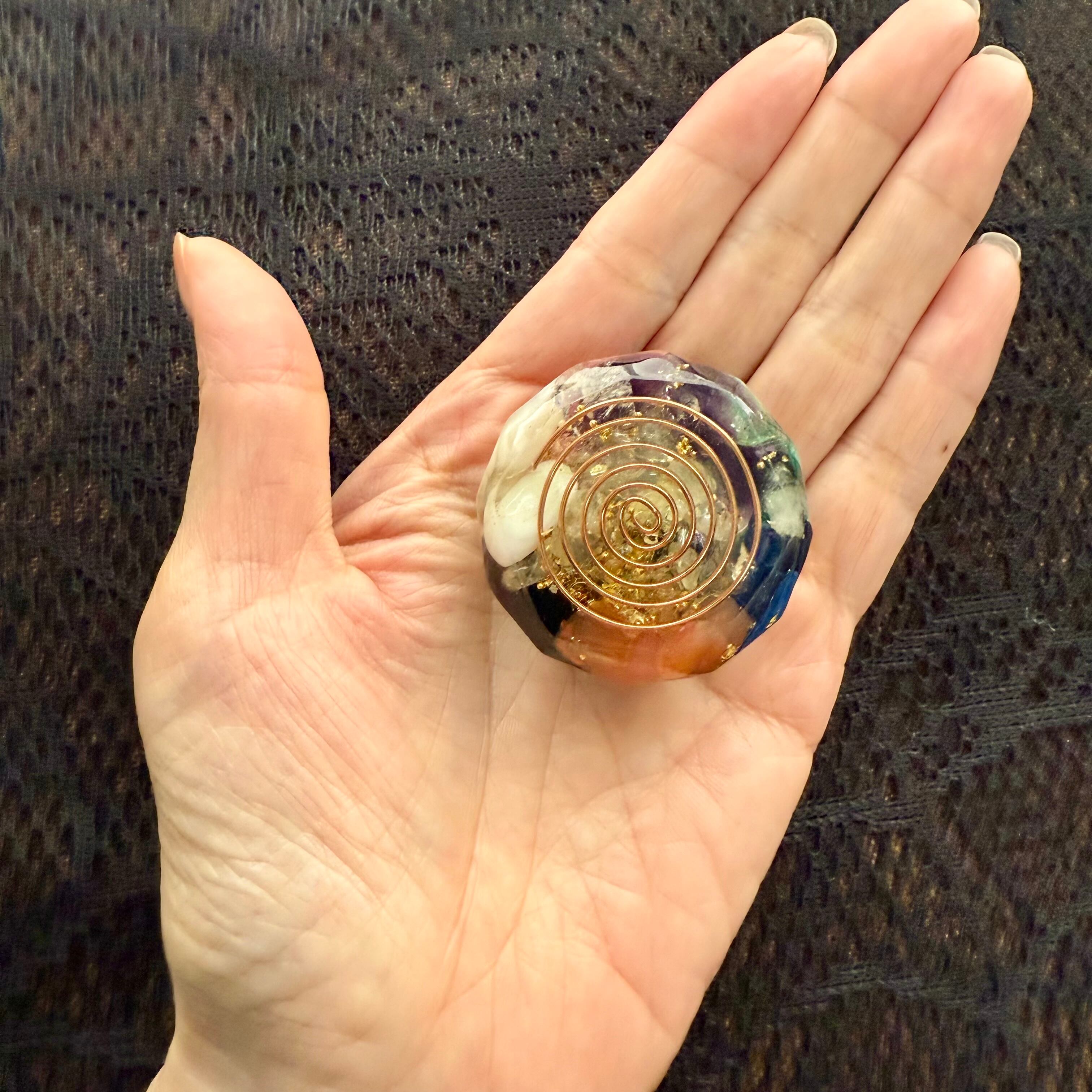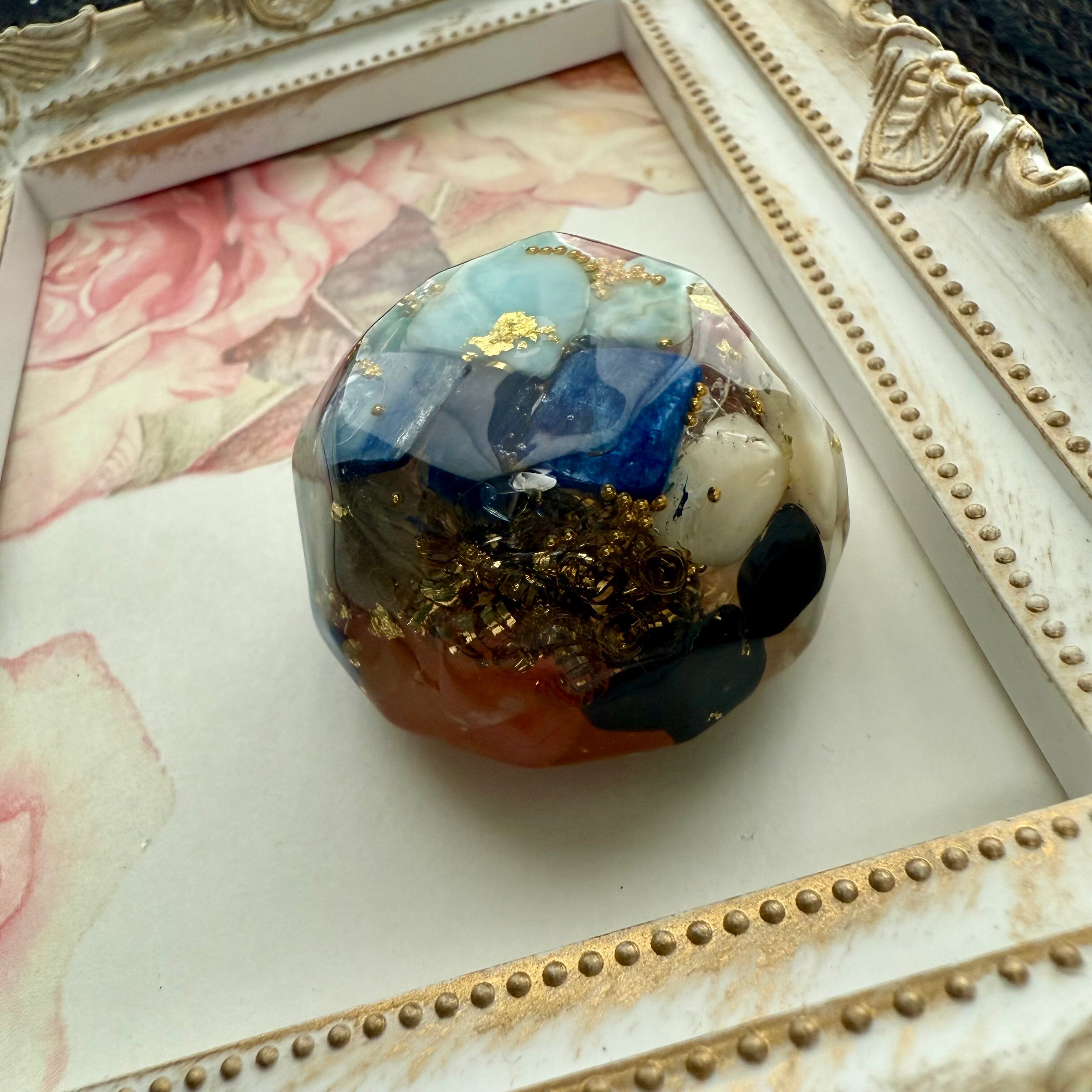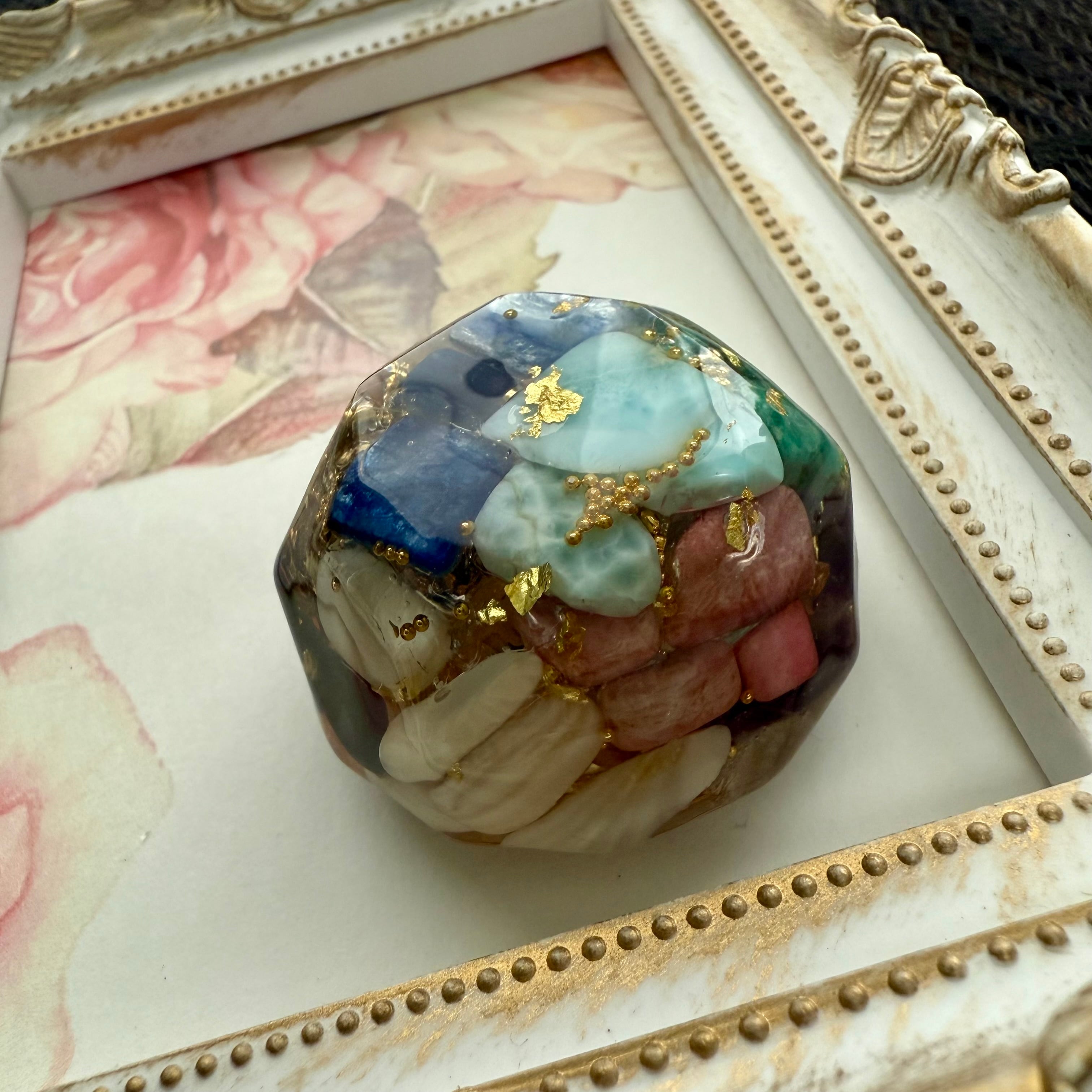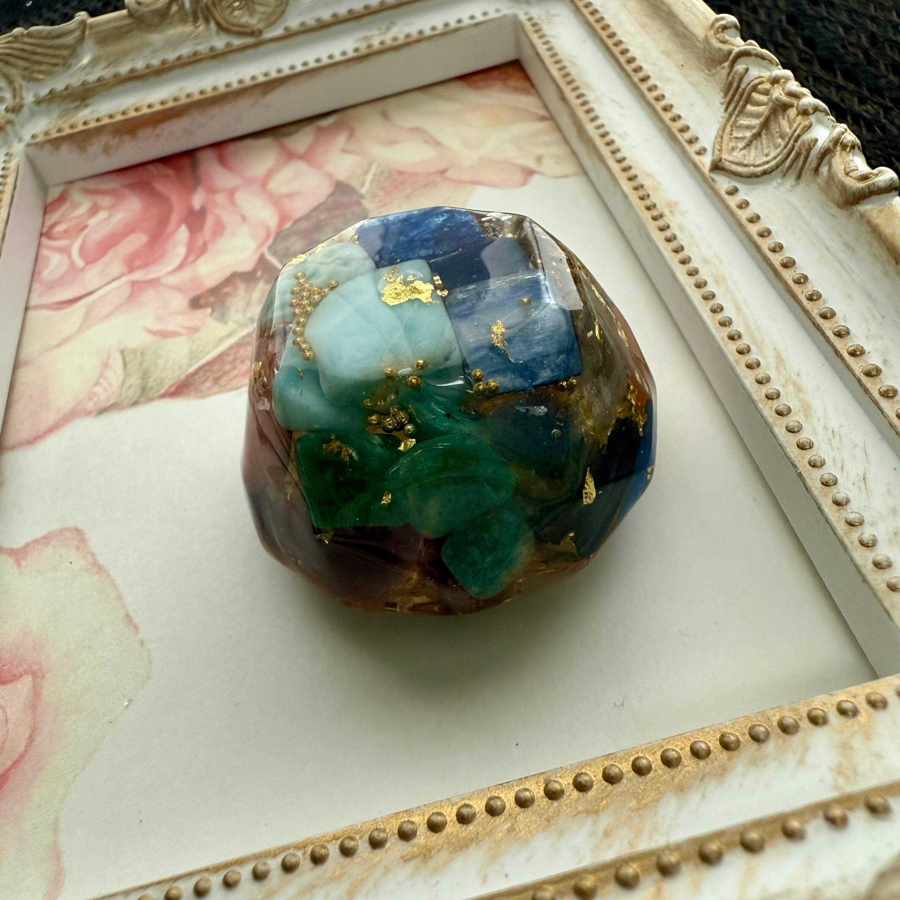 いろいろな石を使った、カラフルな色どりのオルゴナイトです。