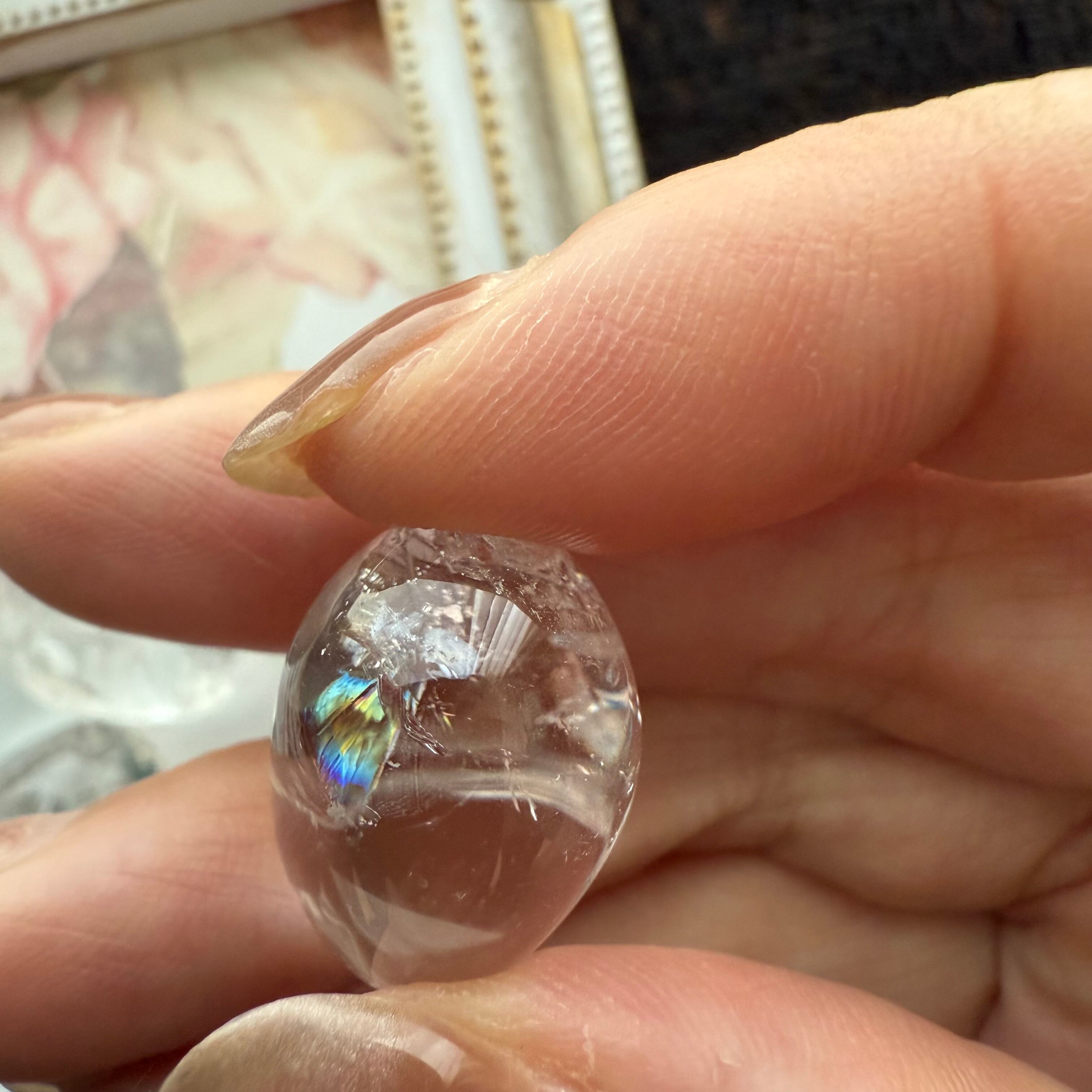 お迎え時の情報を遡りましたら、何と天然のレインボー水晶さんでした✨