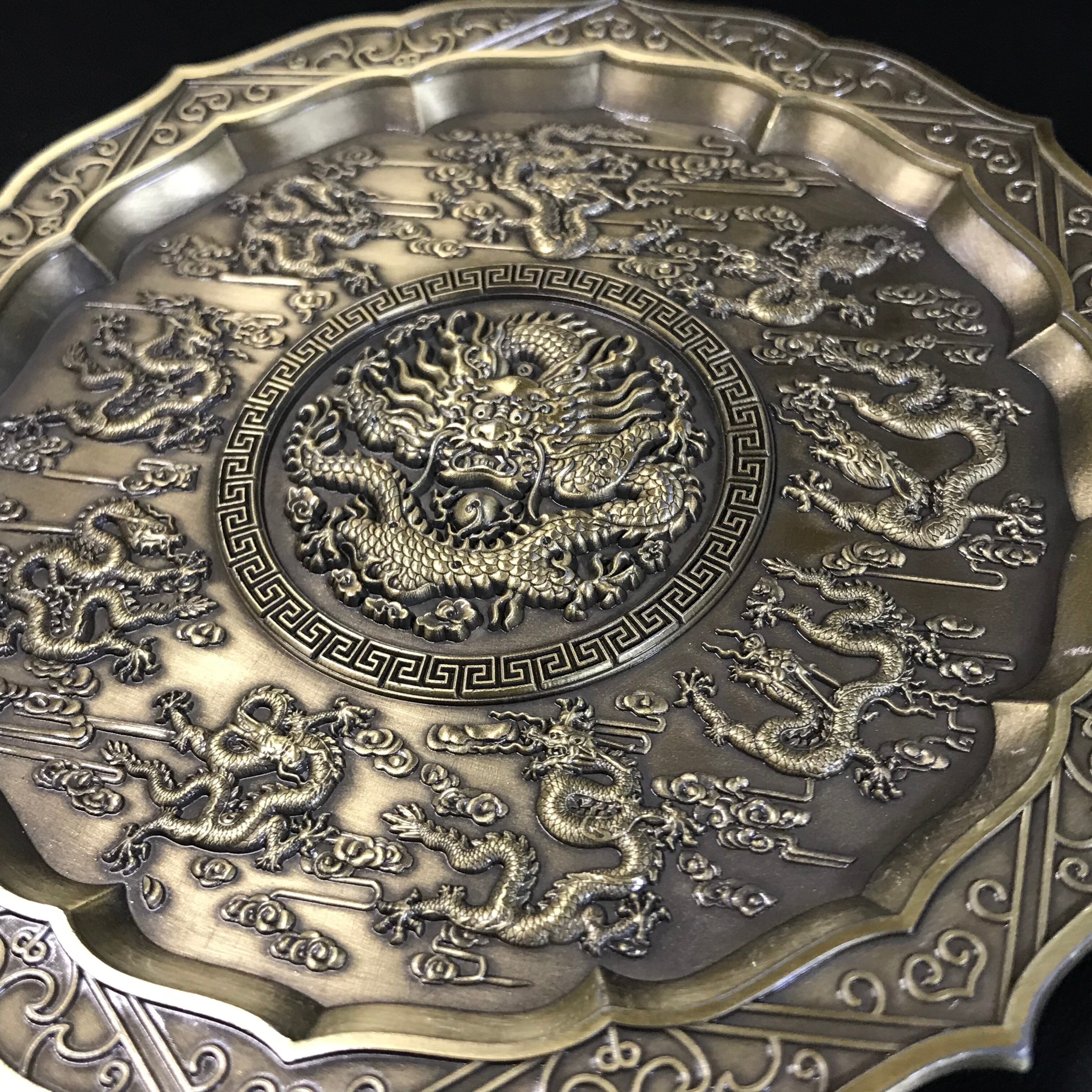 真鍮製の小皿です♬ お香受けや、さざれを入れたりするのにいかがでしょうか╰(*´︶`*)╯♡ 細かな龍の細工が素敵です♡ 約11.5cm 130g 別売でお香立て直径3.3cm¥300もございます♬