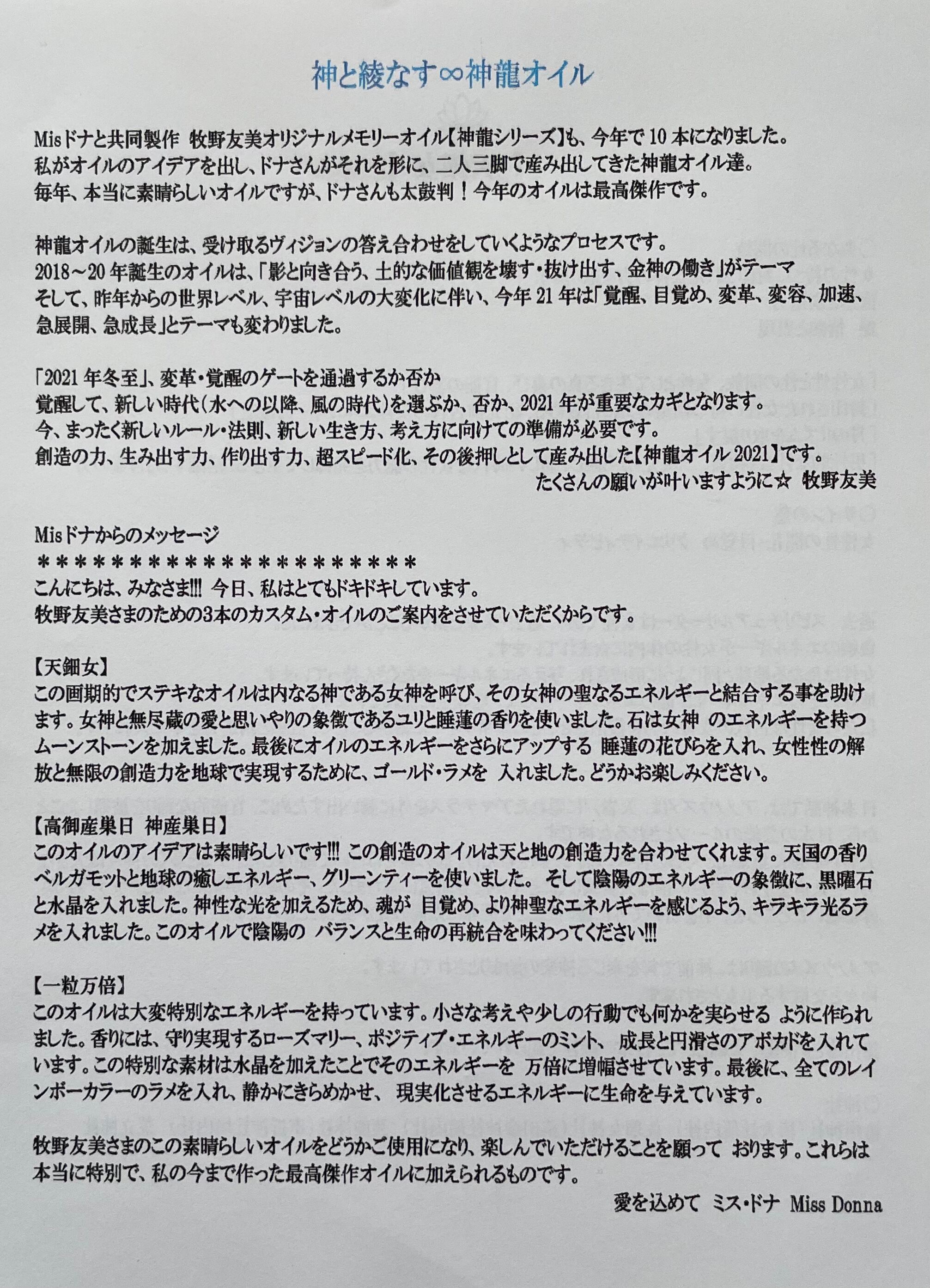 牧野友美先生監修の特別カスタムメモリーオイル神龍シリーズのフルボトルです。