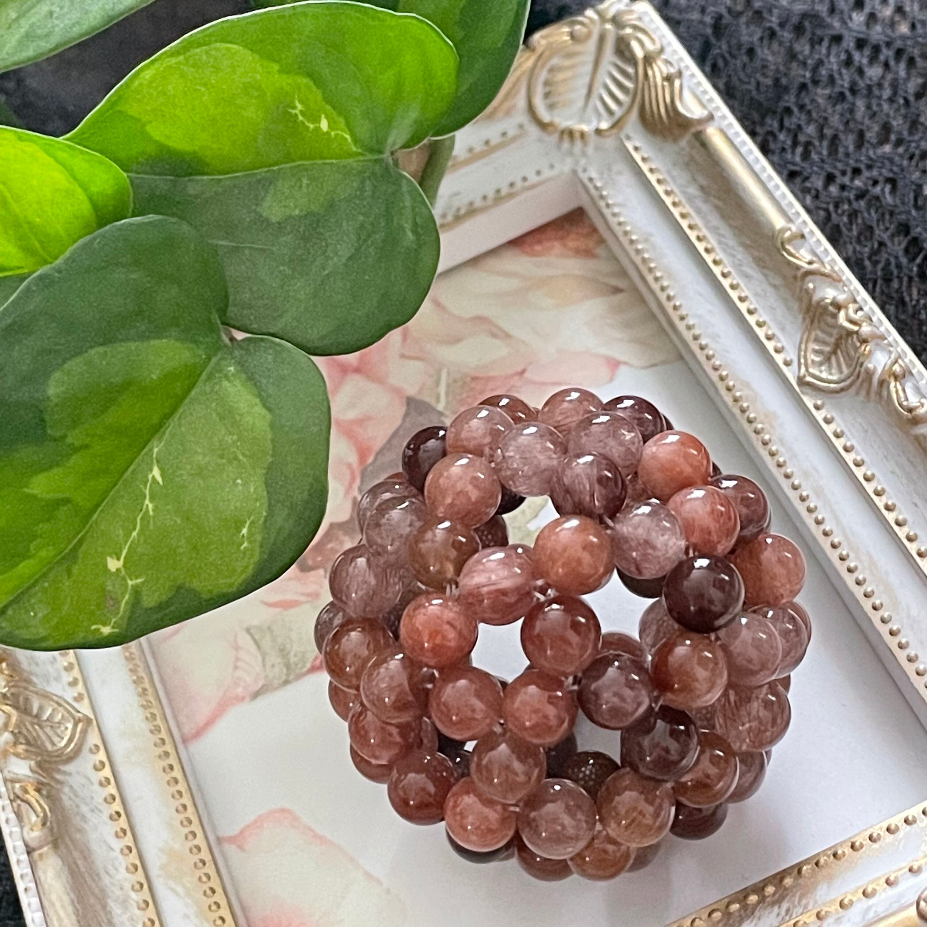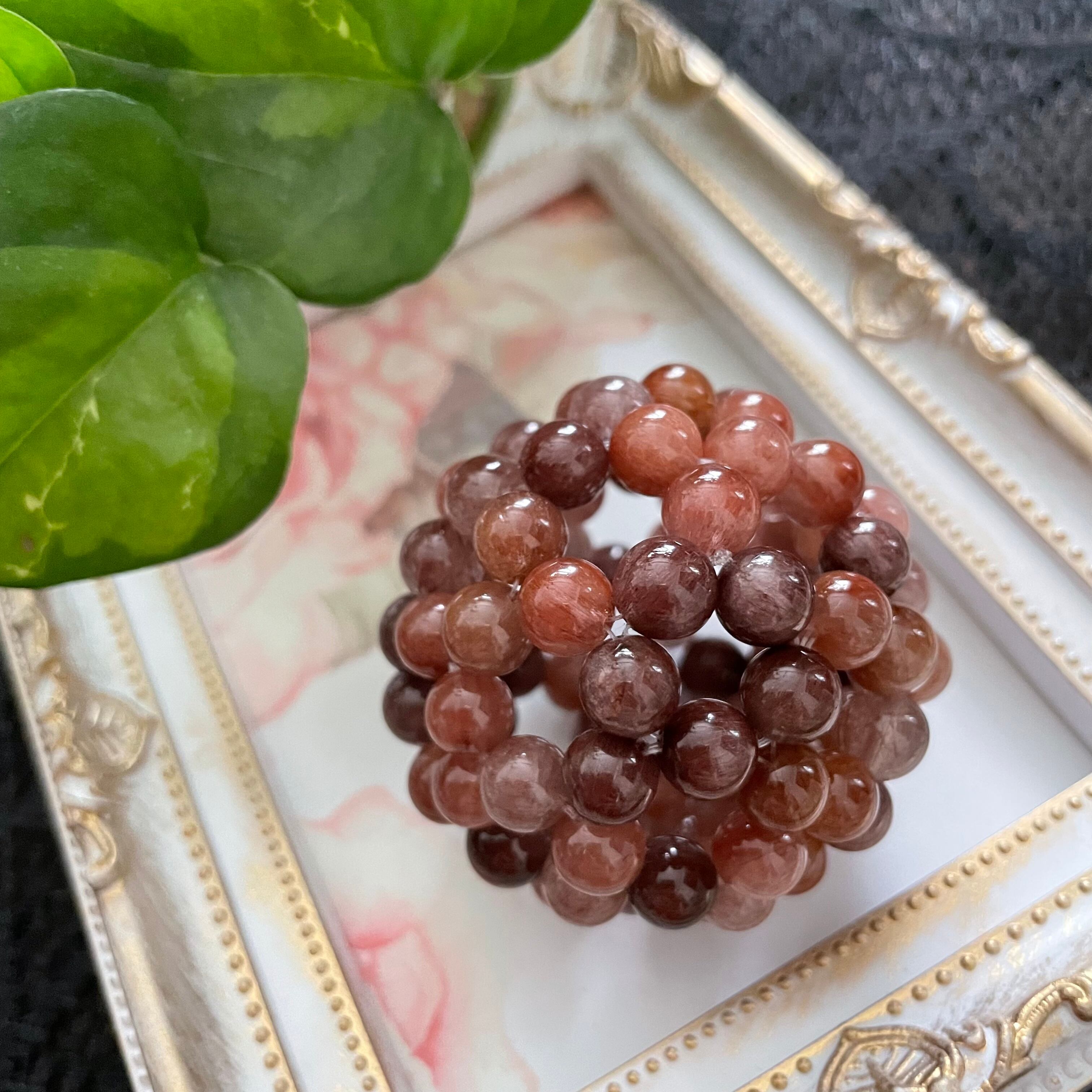 連の中でも様々な色味があるレッドルチルさんで、朱色っぽく見える粒もあれば、えんじ色のような濃い色合いの粒も居ます。