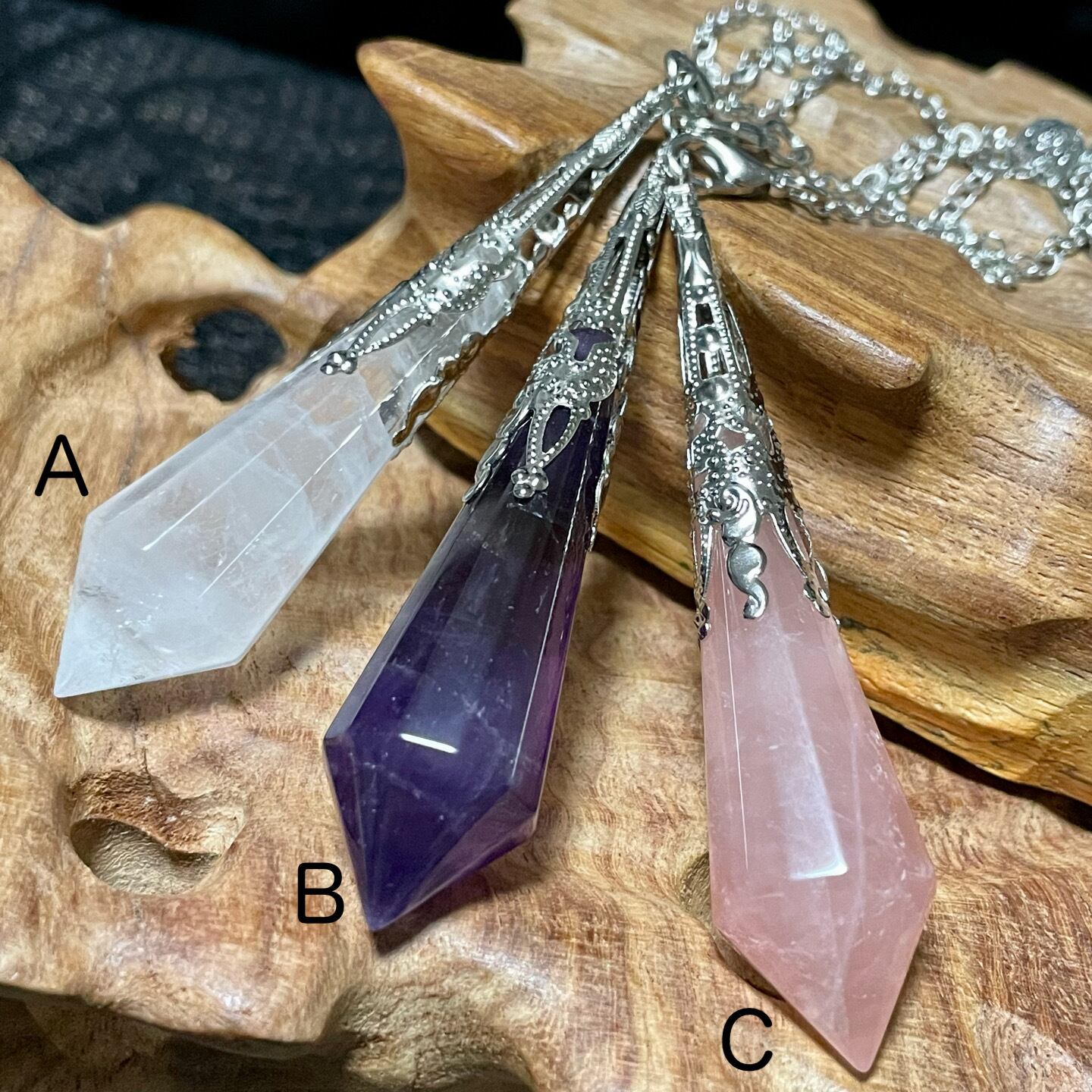 クォーツ・ローズクォーツ・アメジストの3種、どれも1点のみのご用意となります。