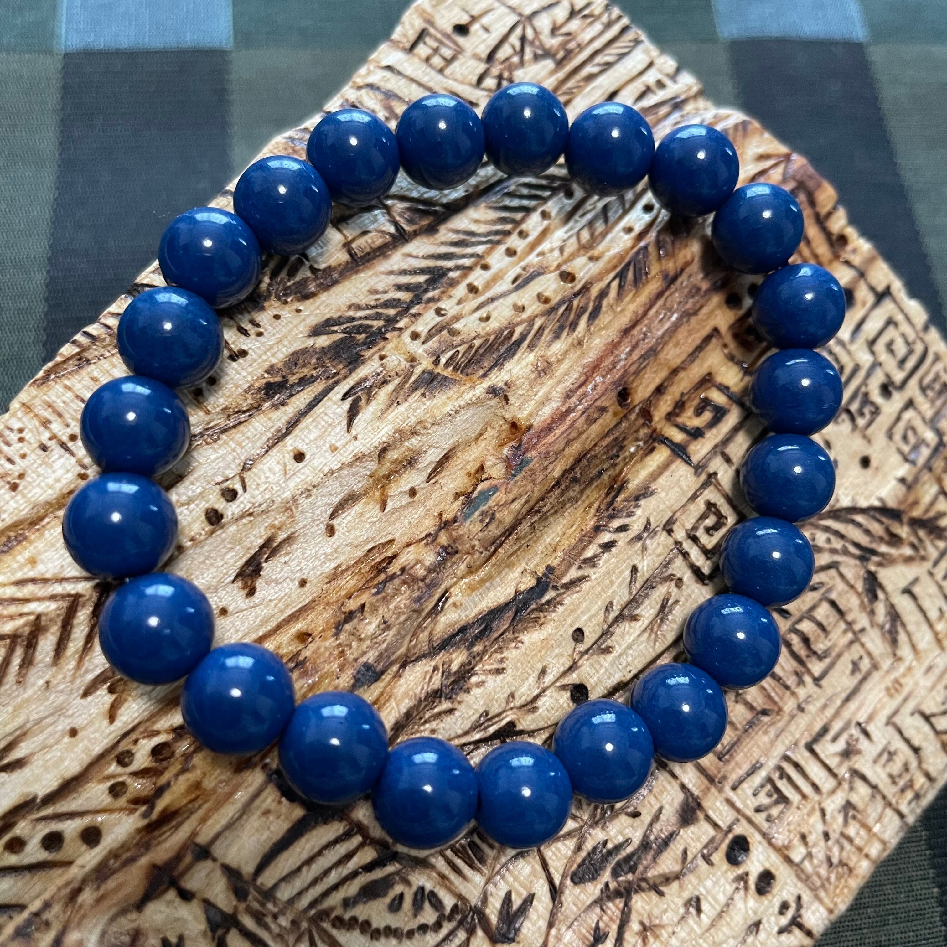 8mm珠のロイヤルブルーカラーの北投石のみで紡いだブレスレットです✨