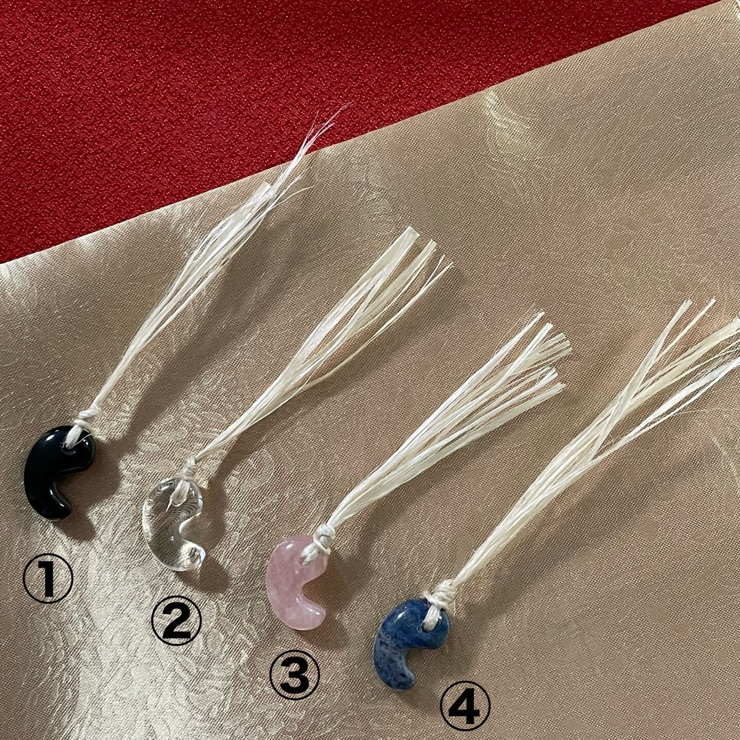 お写真1枚目左端のローズクォーツは勾玉が少し大きいものになります。