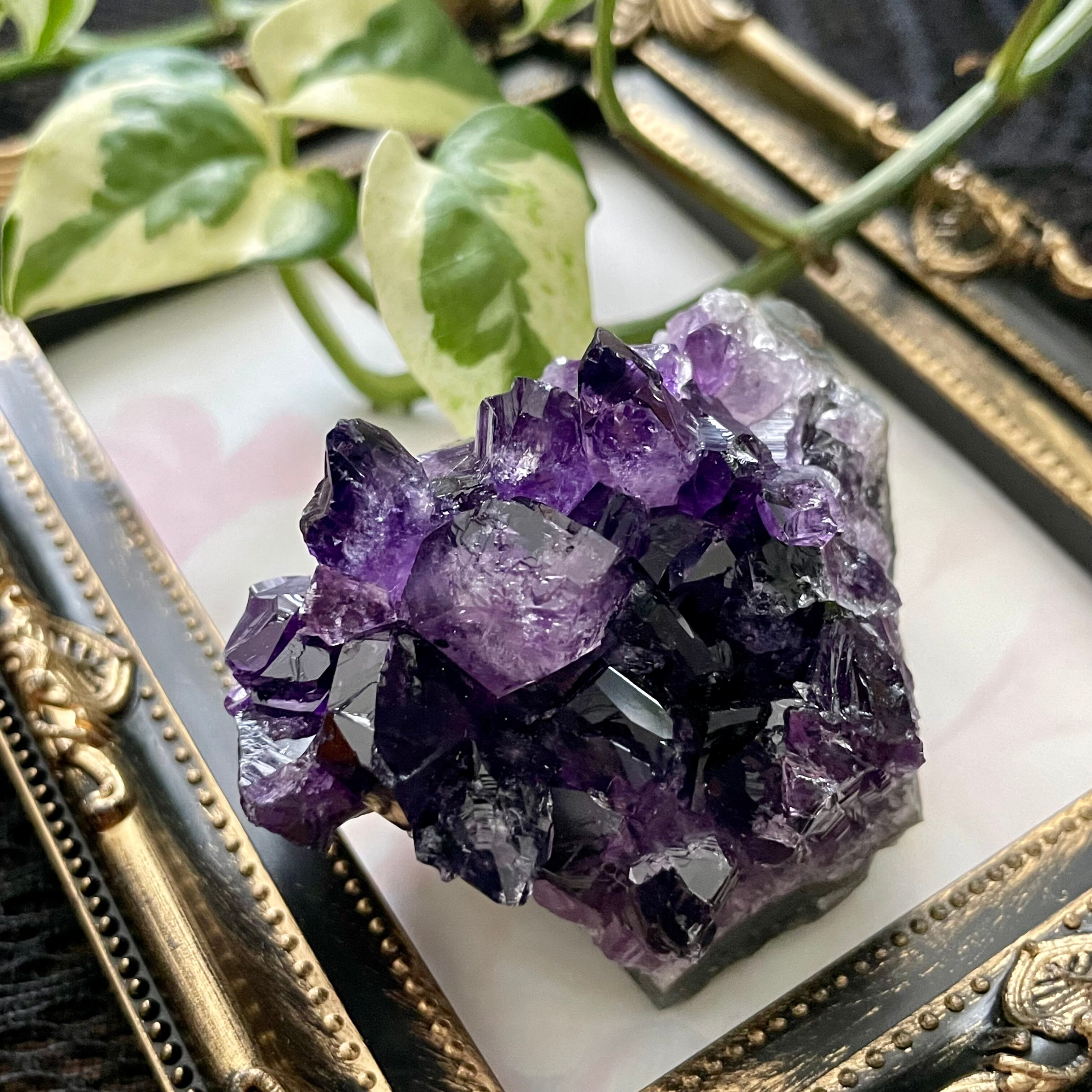 深い紫色が美しい、ウルグアイ産のアメジストクラスターです。